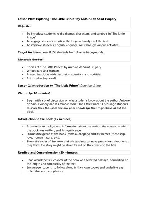 Read Lesson Plans The Little Prince Kobo Gutenberg